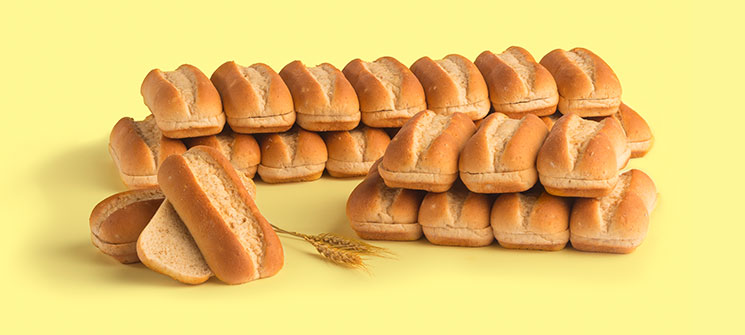 Slab-sliced hoagie bun with 2.25 bread credits per serving