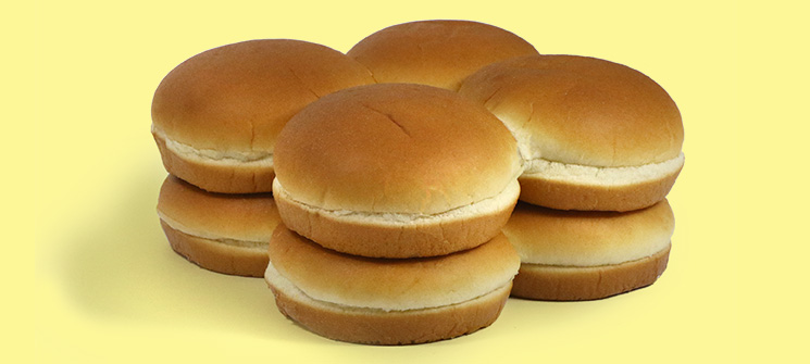 8 unsliced hamburger enriched buns; buns are packed in a pre-printed poly bag.